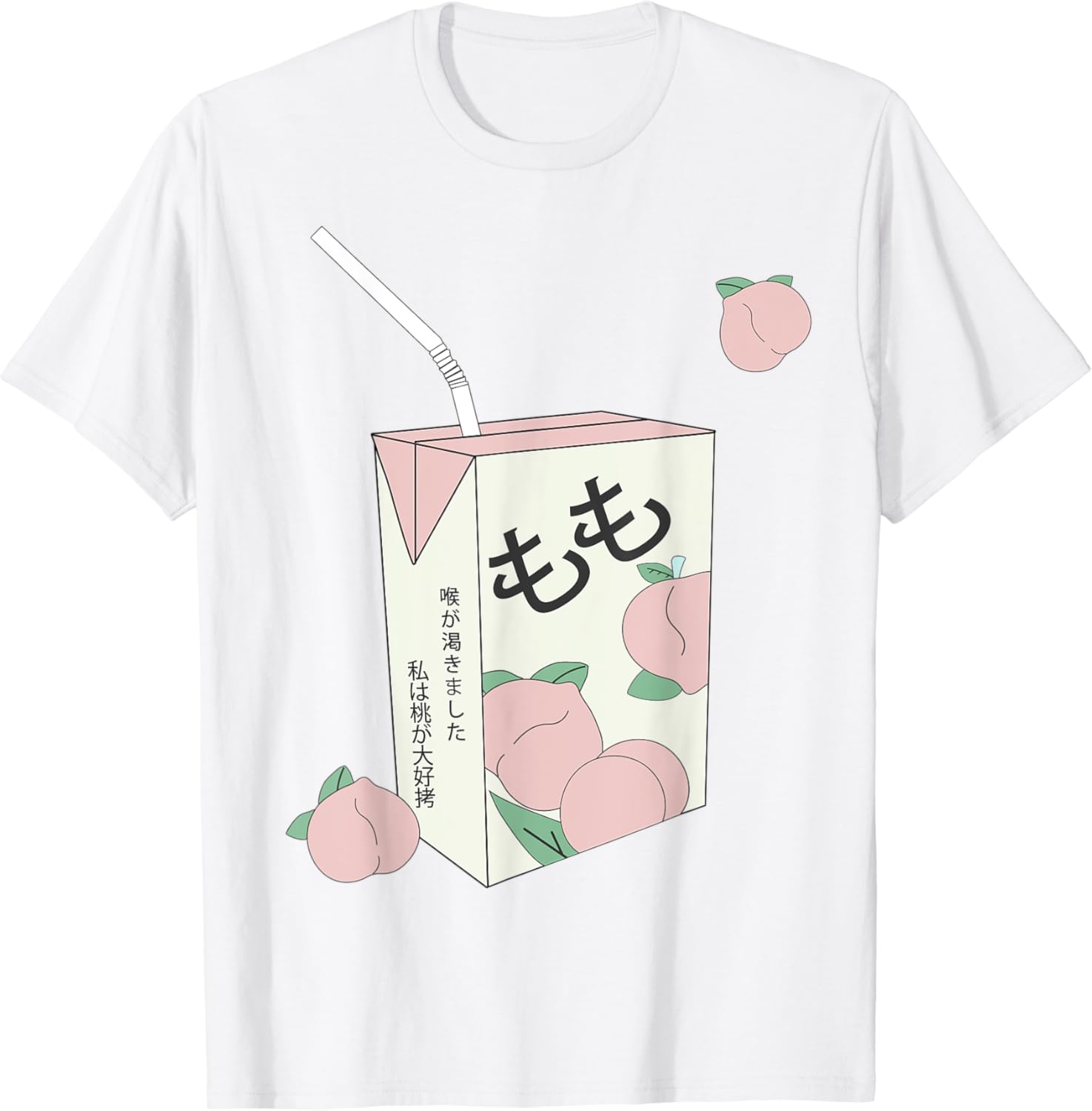 Indie Aesthetic Girls Tops Japanese Text Otaku Peach Juice T Shirt Clothing Shoes Jewelry